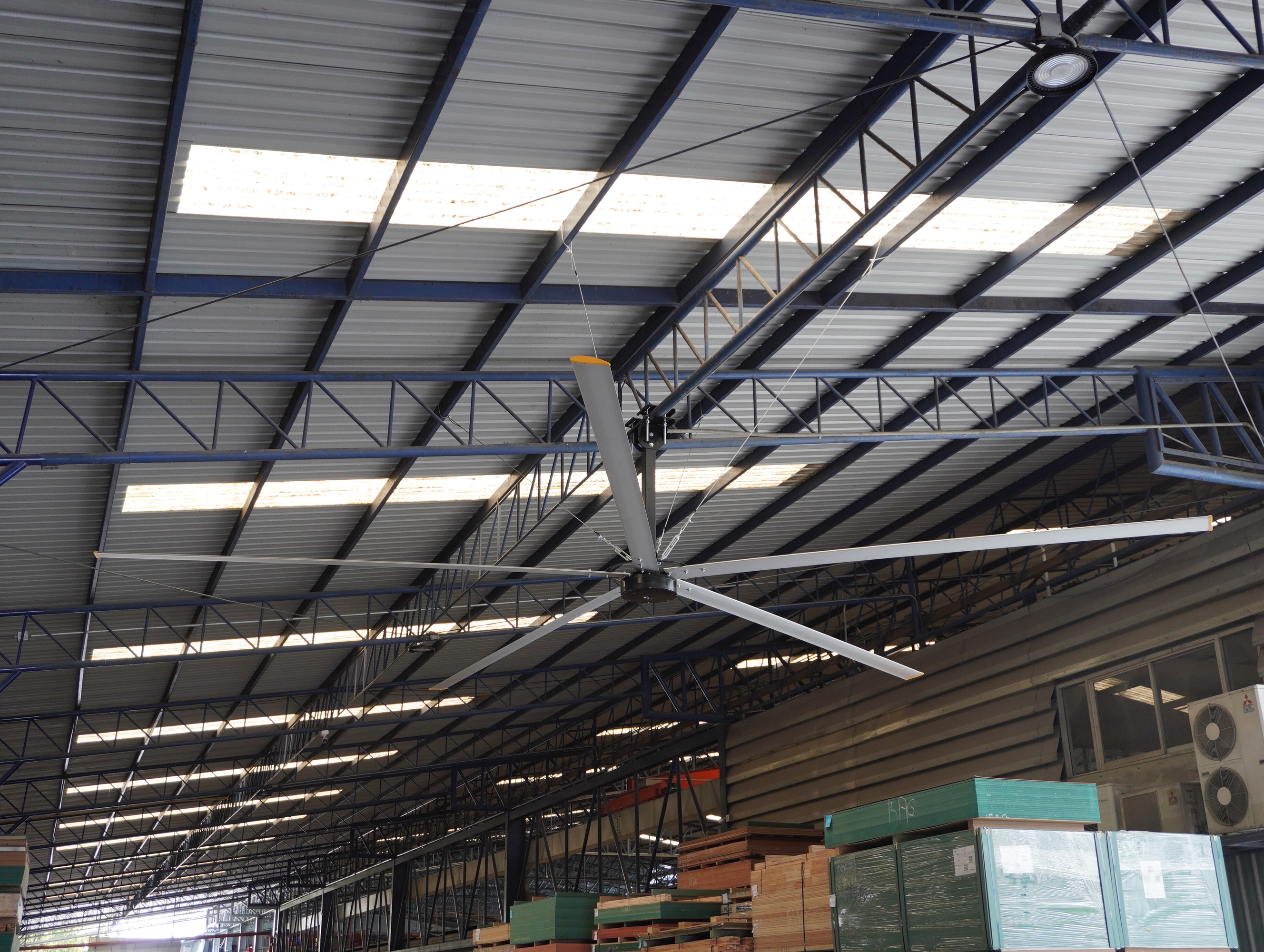 พัดลมยักษ์ หรือ พัดลม HVLS (High Volume, Low Speed) จึงเข้ามามีบทบาทสำคัญกับอุตสาหกรรมไทยในปัจจุบัน ซึ่งพัดลมยักษ์ไม่ได้มีดีแค่การสร้างลม แต่เป็นเครื่องมือที่ช่วยที่สำคัญในการ “กระตุ้นการเคลื่อนที่ของอากาศ” ภายในพื้นที่ให้เกิดขึ้นอย่างต่อเนื่องและสม่ำเสมอ ใบพัดขนาดใหญ่จะสร้างการไหลเวียนของอากาศในลักษณะกว้างและครอบคลุม ทำให้บรรยากาศโดยรวมมีความเคลื่อนไหว ลดจุดที่อากาศนิ่ง และช่วยให้การระบายความร้อนของร่างกายทำงานได้ดีขึ้น ในวันที่มีลมภายนอก พัดลมยักษ์จะช่วยกระจายลมนั้นให้ทั่วถึงมากขึ้น ทำให้เกิดประโยชน์สูงสุดกับทั้งพื้นที่และในวันที่อากาศนิ่ง ดังนั้น หากมองในภาพรวมสภาพอากาศภายนอกเป็น “ตัวแปรที่ควบคุมไม่ได้” แต่ระบบลมภายใน คือ “สิ่งที่เราสามารถออกแบบและควบคุมได้” การติดตั้งพัดลมยักษ์จึงไม่ใช่แค่การเพิ่มลมในวันที่ร้อนแต่เป็นการทำให้สภาพแวดล้อมภายใน “มีเสถียรภาพ” มากขึ้นในทุกวัน