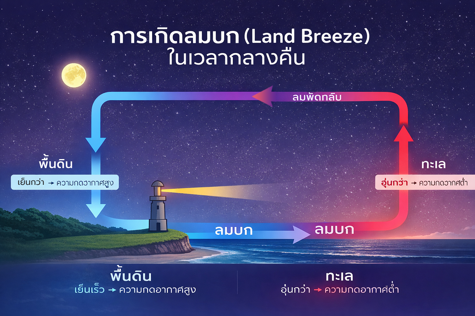 โดยพื้นฐานแล้ว ลมคือการเคลื่อนที่ของอากาศจากจุดหนึ่งไปยังอีกจุดหนึ่ง ซึ่งเกิดจากความแตกต่างของอุณหภูมิและความกดอากาศ อากาศที่ร้อนจะมีความหนาแน่นต่ำและลอยตัวขึ้นไปด้านบน ขณะที่อากาศที่เย็นมีความหนาแน่นสูงกว่าจะอยู่ด้านล่าง เมื่อเกิดความไม่สมดุล อากาศจะพยายามเคลื่อนที่เพื่อปรับสมดุลนั้น และการเคลื่อนที่นี้เองที่เราเรียกว่า “ลม”